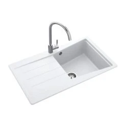 Rangemaster Mica Compact 1 Bowl Igneous Granite Kitchen Sink – Crystal White – MIC860CW/
