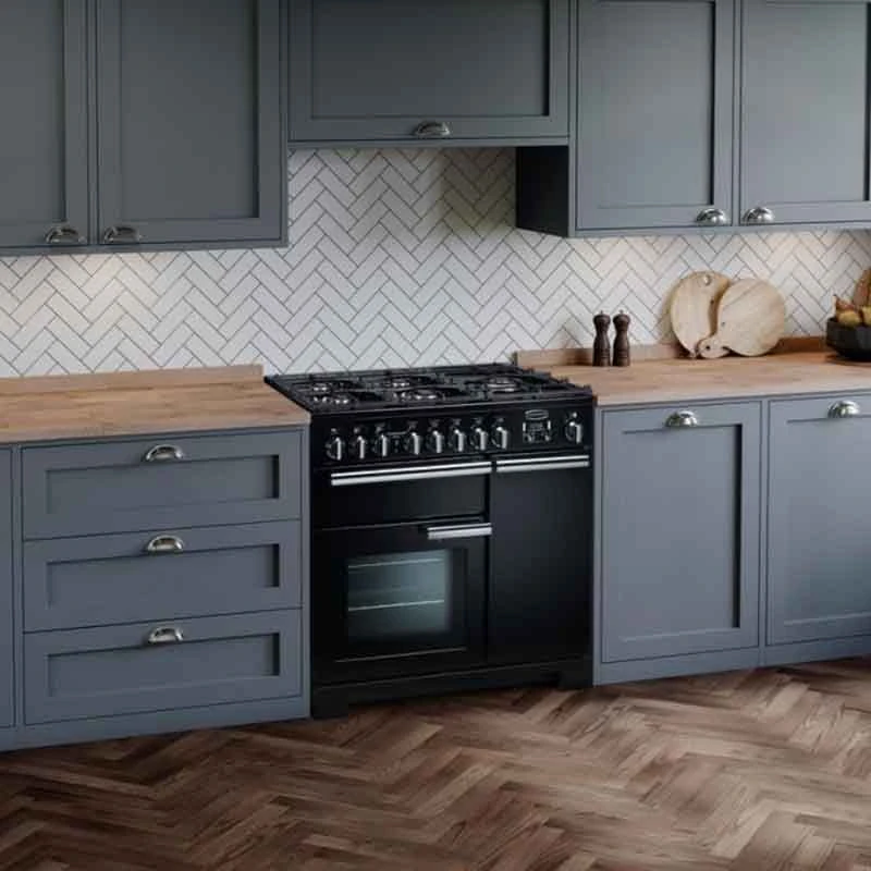 The Rangemaster Professional Deluxe dual fuel cooker is an ideal addition to a large family kitchen. There’s plenty of space for all of your cooking so that you can easily create elaborate meals. It is equipped with 2 ovens that offers rapid response, which reheats the oven faster than a fan oven so you can cook your Sunday roast in one oven and bake cakes for dessert in the other in an instant. There’s also a separate electric grill, making it simple to prepare a quick grilled snack or add the finishing touches to your meal. You will also be able to cook the rest of your mains using the hob that provides high power gas burners. Not only that, the cooker has a multi ring burner that produces rapid heat, making it ideal for stir frying.