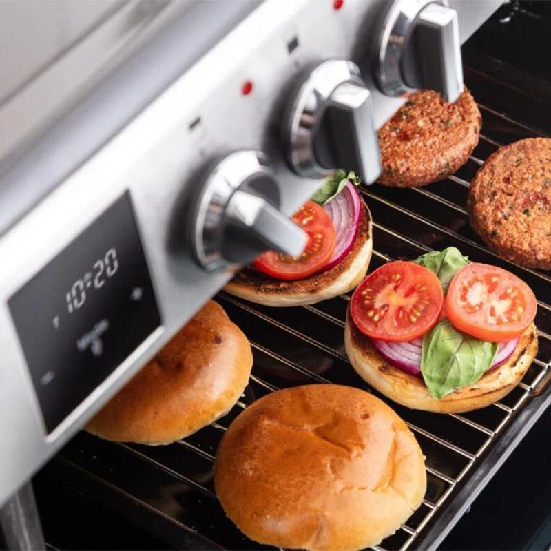 This new, premium 60cm freestanding cooker range is specially designed to bring all the professional benefits of a Rangemaster range cooker to smaller spaces. A freestanding range cooker has so many benefits. As well as providing a statement centrepiece to any kitchen. This Rangemaster professional plus 60 dual fuel cooker is finished in stainless steel and chrome. This stylish range cooker includes four burners including a wok burner, grill and oven. The cooker is also supplied with a griddle which can be placed on the burners for healthy cooking.
