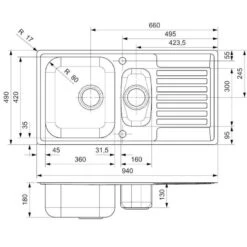 Reginox Ohio 18 x 40 Elite Integrated Kitchen Sink – OHIO 18X40 L