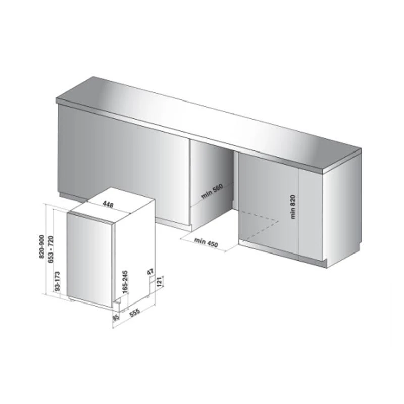 - H820 x W448 x D555 mm