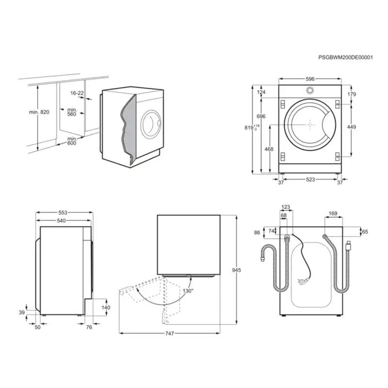- Dimensions: H 819 x W 596 x D 540mm