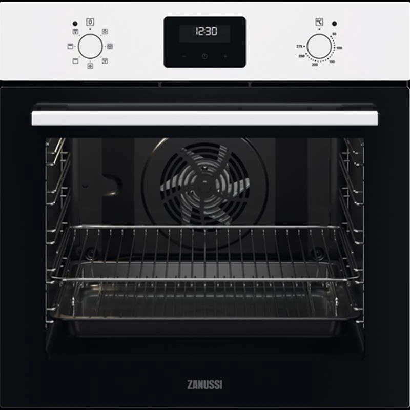 The Zanussi ZOHNX3W1 B/I Single Electric Oven circulates hot air heat with its fan and ring element. Air is continuously moved around in the oven cavity, to make sure that dishes can be cooked on different levels at the same time. The hot air generated inside the oven during cooking is moved around with a fan, so all your dishes receive the same amount of heat. This lets the oven heat up faster, which means you’ll get the same results using 20% lower temperatures, saving time and using less energy.